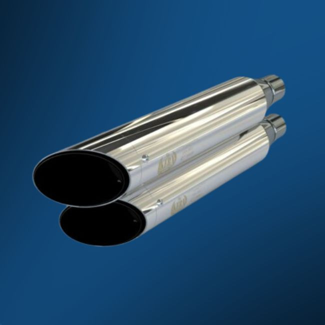 Du hast einen Harley-Davidson Dyna Auspuff mit klassischem Layout (hintereinander) in hochglanzpoliertem Edelstahl gewählt.