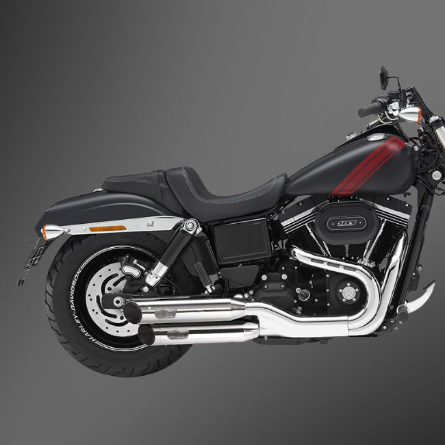 Du hast dich für einen Harley-Davidson Dyna Auspuff mit moderner Auspuffführung (Fat Bob) in hochglanzpolierter Edelstahl-Ausführung entschieden.
